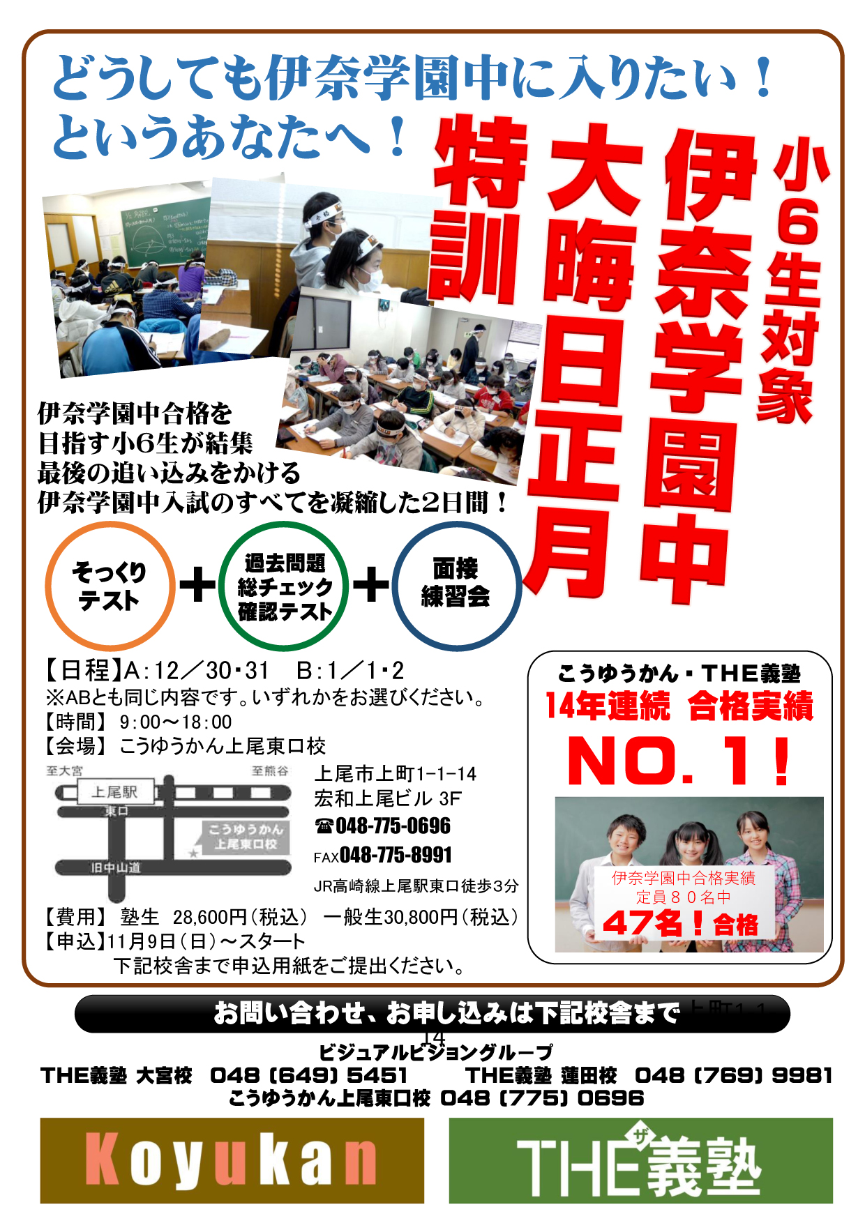 11/9~申込スタート!伊奈学園中 大晦日・正月特訓