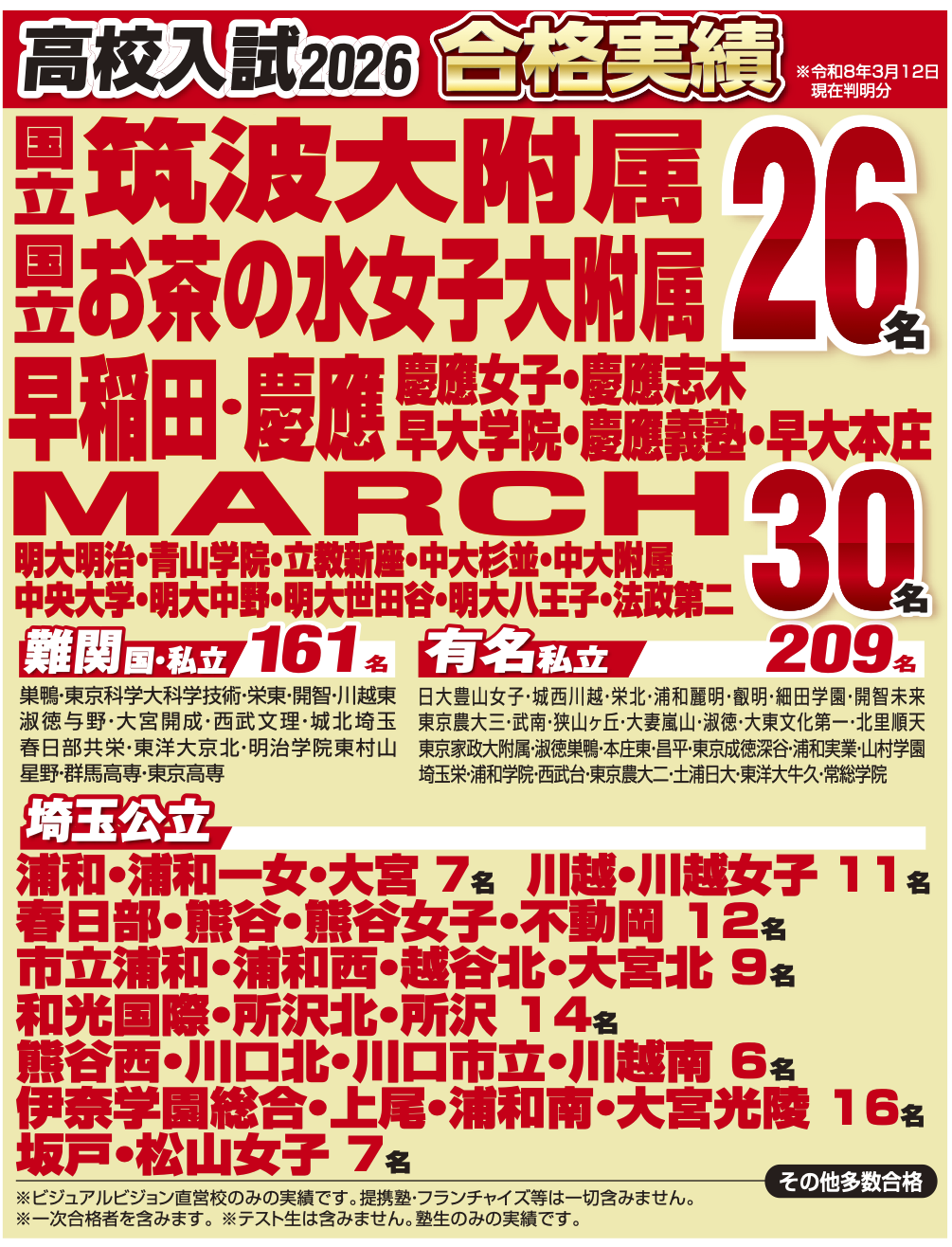 2026年度高校入試合格速報!(難関国私立・埼玉公立)